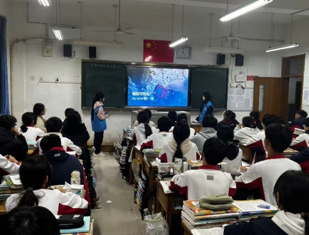 宣讲团赴潍坊市多所中学开展“两弹一星精神进校园”专场活动,以“PPT讲解+实验模拟+互动问答”的多元形式,为中学生带来沉浸式科普体验。宣讲团从生活中常见的自然辐射切入,用通俗比喻解读核辐射基本原理,重点展示核能在医学诊疗、农业育种、工业生产、清洁能源等领域的不可替代价值,帮助学生建立科学认知。互动交流环节,针对学生关心的核辐射日常防护、核电站安全机制、核医学发展前景等问题,宣讲团成员逐一细致解答,现场氛围热烈活跃,有效巩固科普成效,让“两弹一星”精神与科学探索精神深度扎根青少年心中。